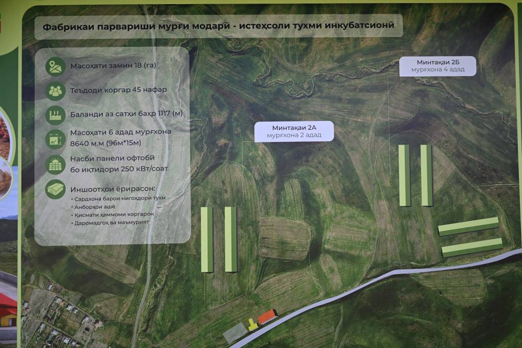 Ҳудуди заминҳое, ки ин иншоот дар он сохта мешавад, зиёда аз 36 гектарро ташкил дода, дар умум 23 фермаи иловагии парвариши паранда бо биноҳои маъмурӣ, санитарӣ, анборҳо, гузаргоҳҳо ва таваққуфгоҳҳои техника бунёд меёбад. Кашидани хатти барқ дар масоҳати беш аз 10 км ҳам пешбинӣ шудааст.